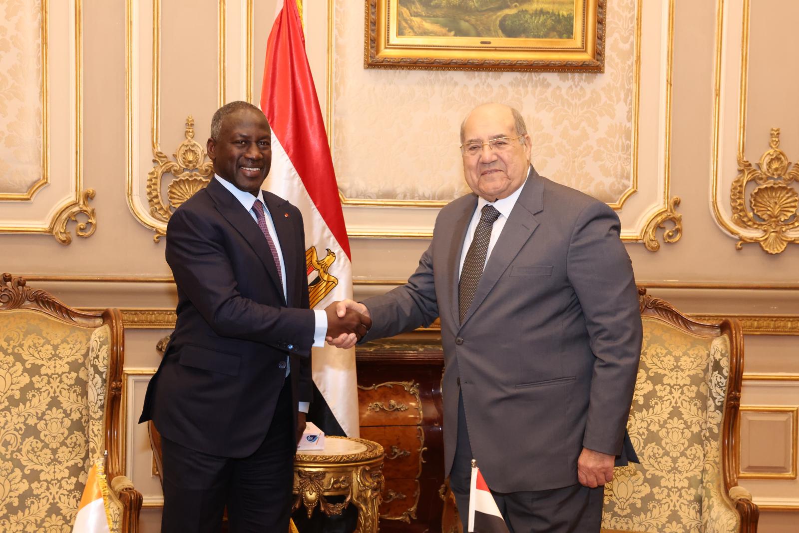 Au deuxième jour de sa visite d’amitié et de travail en Égypte, le président de l’Assemblée nationale de Côte d’Ivoire, Adama Bictogo, s’est entretenu, le lundi 19 février 2024, avec le président de la Chambre des Représentants, Dr. Hanafy Ali Gebaly, puis celui du Sénat, Abdel-Wahab Abdel-Razek.