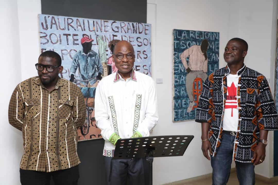 Légende photo : Le Pr. Yacouba Konaté, directeur de la galerie et commissaire de l’exposition, entouré des artistes-plasticiens Zana Soro et Daouda Traoré.