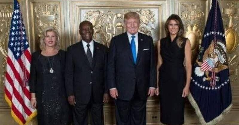 Légende photo : Les couples Ouattara et Trump posant lors d’un visite officielle du président ivoirien aux Etats-Unis d’Amérique. (Archives).